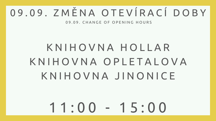 Změna otevírací doby všech poboček 9. 9. (HOLLAR, OPLETALOVA, JINONICE) 11:00 - 15:00